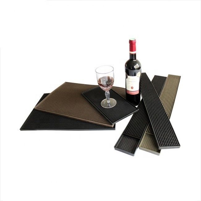 Tapete de silicona para barra de bar, color negro. Con pivotes antiderrapantes. Para colocar todo tipo de herramientas, utensilios y vasos en bares, evitando que se resbalen. De alta durabilidad, fácil de usar y de lavar.