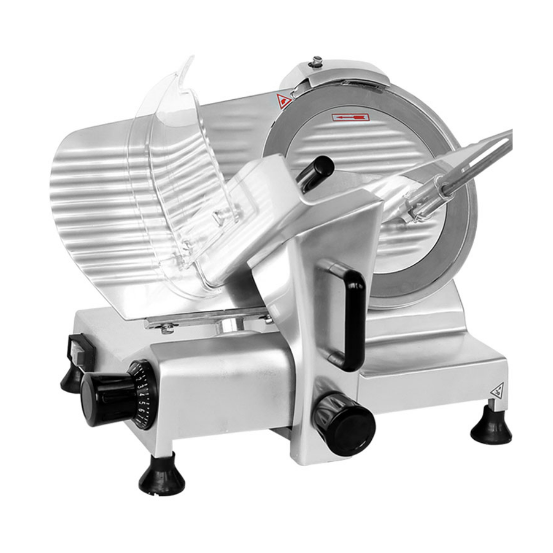 La cortadora de fiambre es ideal para cualquier cocina profesional, charcutería o supermercado.Diseñadas para ofrecer cortes uniformes, seguros y rápidos, esta fabricada con un cuerpo de aluminio pintado, combina robustez y ligereza, su disco esta hecho de acero al carbono. Equipado con patas y asas de plástico, es fácil de manejar y segura de usar.