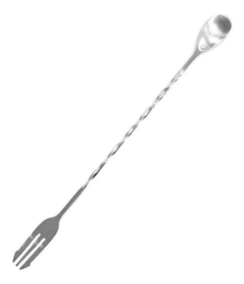 Cuchara de bartender de acero inoxidable pulido, un extremo de la cuchara puede mezclar cócteles y algunas sopas, mientras que el otro extremo del tenedor puede remover bocadillos o frutas.