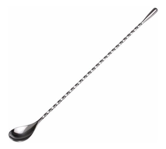 Cuchara de bartender de acero inoxidable pulido, un extremo de la cuchara puede mezclar cócteles y algunas sopas, mientras que el otro extremo posee un contrapeso.