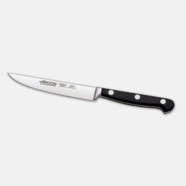 Mango fabricado en polioximetileno, un material resistente e higiénico. Las distintas piezas se encuentran unidas con remaches de acero inoxidable. Excelente dureza y calidad de filo gracias a su hoja de acero NITRUM®. Filo especial de seda que une la tradición de Arcos con lo último en avances tecnológicos. Es apto para el lavavajillas, aunque se aconseja limpiar a mano para garantizar la durabilidad del filo.