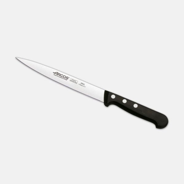 Este cuchillo está diseñado específicamente para el corte y limpieza del lenguado. Cuenta con una hoja larga de 170 mm, flexible, pero fuerte y resistente. Además, su filo es liso y te recomendamos seguir los consejos de uso para mantenimiento de cuchillos o usar el servicio de afilado profesional para mantenerlo en óptimas condiciones. Fabricado con NITRUM®, un acero inoxidable resistente y duradero. Sistema Bactiproof Silver, que evita que las bacterias se adhieran a la superficie del mango. Flexibilidad, la justa y necesaria para separar cómodamente el pescado de la espina. Resistente a las altas temperaturas y los golpes. Apto para el lavavajillas.