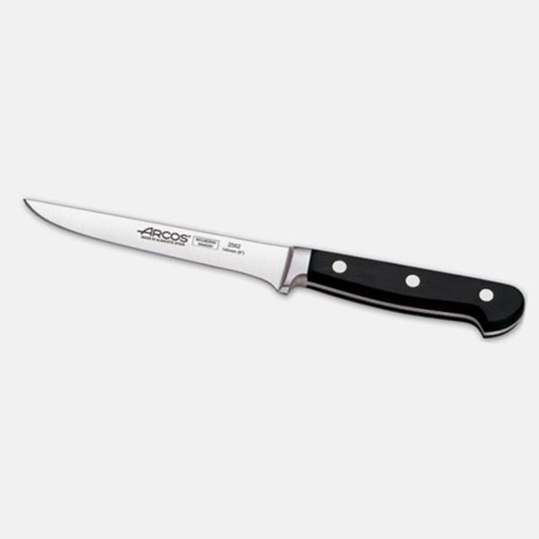 El Cuchillo Deshuesador está elaborado para ayudar a separar los huesos de la carne sin esfuerzos, gracias a su hoja delgada con una curvatura característica al final. Cuenta con una hoja delgada forjada en acero inoxidable NITRUM®, un material de alta dureza y que proporciona una mayor fuerza de corte. Resalta por su filo especial de seda, elaborado para garantizar un corte preciso. Su mango tiene una forma ergonómica que se adapta a la forma de tu mano y garantiza la seguridad. Cuenta con remaches de acero inoxidable anti-corrosión. Es apto para el lavavajillas.