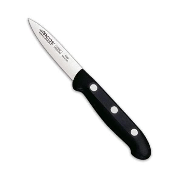 Este cuchillo mondador serie Maitre 80 mm Arcos tiene un diseño compacto y ergonómico que facilita el corte y limpieza de varios alimentos. Además, está hecho por expertos en Albacete, con una tecnología innovadora, que lo hace muy resistente y duradero. Hoja afilada de 80 mm, forjada en España con acero inoxidable NITRUM®, cuya fórmula es exclusiva de Arcos. Mango resistente al calor y químicos, hecho con polipropileno. Tiene remaches anticorrosión que fijan la hoja. Peso ligero de 80 gramos, que facilita la manipulación del cuchillo en entornos profesionales o en casa. Apto para el lavavajillas, aunque se recomienda lavar a mano para preservar el filo.