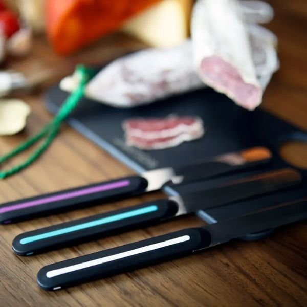 Color fucsia, presenta un diseño elegante y atractivo. Sus funciones principales son la de untar y cortar.