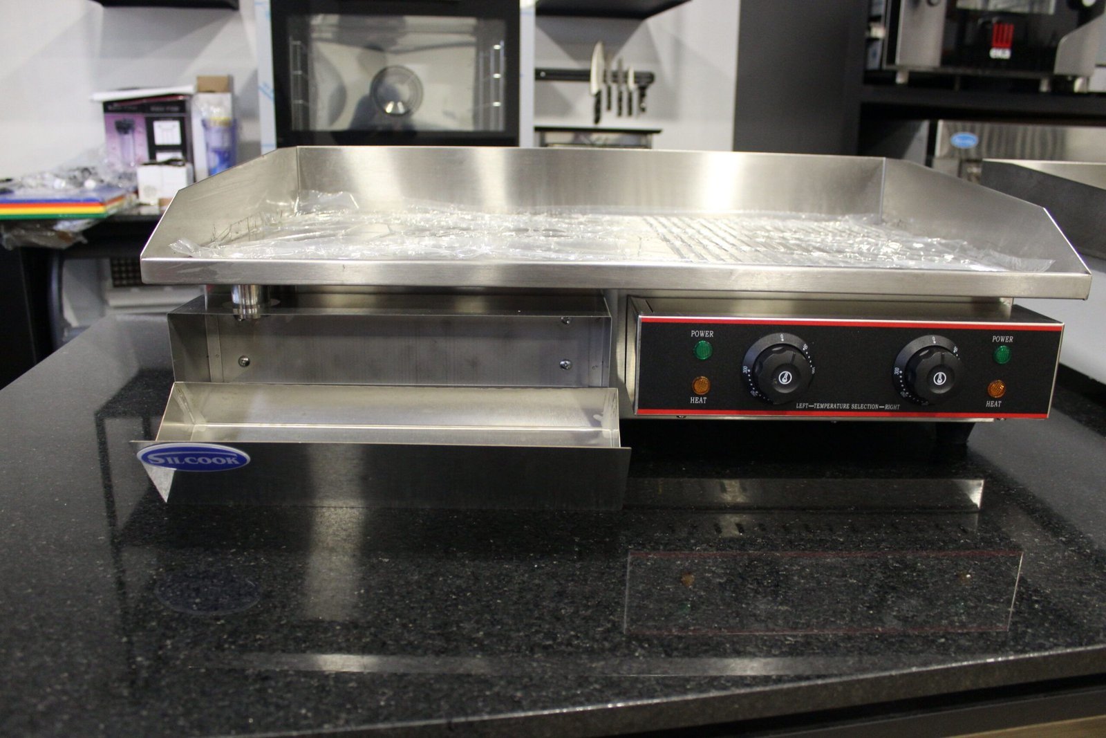 Ideal para preparar una variedad de alimentos en entornos comerciales. Este grill eléctrico cuenta con doble controlador de temperatura y una plancha superior dividida para una cocción versátil.