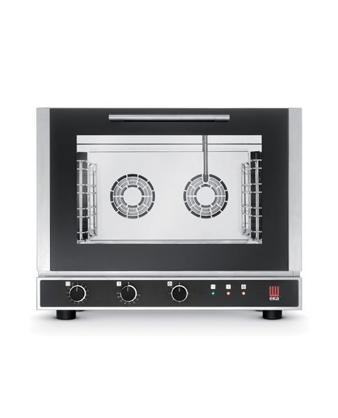El horno industrial cuenta con un humificador y tiene capacidad para 4 bandejas, con un paso de guías de 73 mm. Sus dimensiones son 78x75x63 cm y su peso es de 58 kg. Este equipo posee una potencia de 6,4 kW, un voltaje de 380/400 2N(V) y una frecuencia de 50 Hz, lo que lo hace ideal para cocinas profesionales que requieren eficiencia y rendimiento.