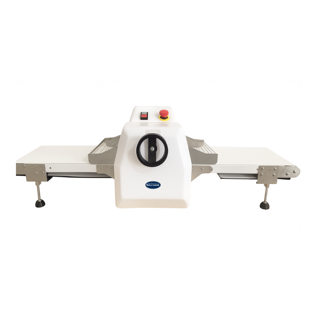 La laminadora Vaivén Silcook es ideal para el procesamiento de hojaldre y una amplia variedad de masas, ofreciendo precisión y facilidad en el laminado. Además, su diseño evita el contacto directo con la masa, asegurando una manipulación más higiénica y eficiente en entornos comerciales y de producción alimentaria.